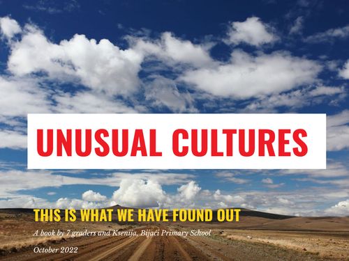 Following our Erasmus+ project Common Heritage from Tradition to Future, which promotes intangible cultural heritage, 5c students got an insight into a presentation on cultural heritage and tested their knowledge through a Kahoot on the same topic. This class joined the project with great enthusiasm, and made wonderful kites that now decorate the foreign language classroom. The idea came from our e-book entitled Unusual Cultures, which explores some intangible features of the cultural heritage of the partner countries. That's how we found out why the Greeks fly kites at Easter, so we made them through true collaborative work. Namely, one class would start the work, and the next class would finish it, which is the case with 6d and 7c. class. The e-book lists more traditions such as Martenitsa among the Bulgarians and Boboteaza among the Romanians. And 7.c. went hunting for an unusual item hidden in the school yard and found Nazar, a Turkish amulet.